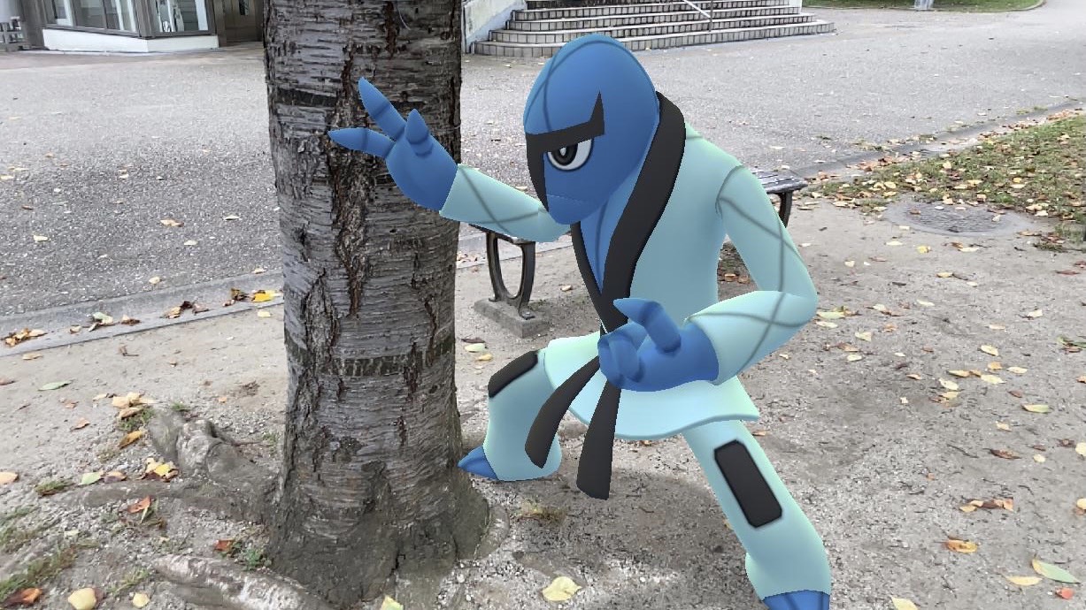 ▼続いてスポーツの秋は修行をするダゲキをAR撮影。意外と声が可愛らしくて高め。普段マナーモードでプレイしているトレーナーさんに是非聞いてみて欲しいです(笑)。