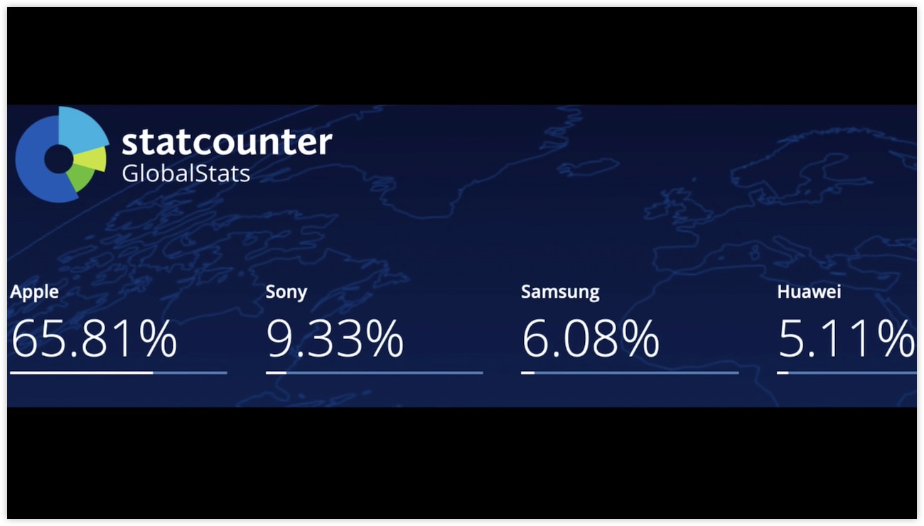 しかし、日本に目を向けると、Samsungはわずか6%しかシェアを獲得していません。一方、Appleは65%と断トツの人気ブランドです。