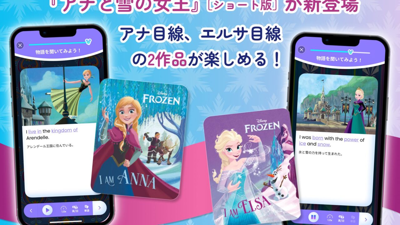 これらのショート版は、すでにリリースされているオリジナル版『アナと雪の女王』(全57話)をやさしくアレンジしたもので、英語初級者でも学びやすい内容となっているとか。