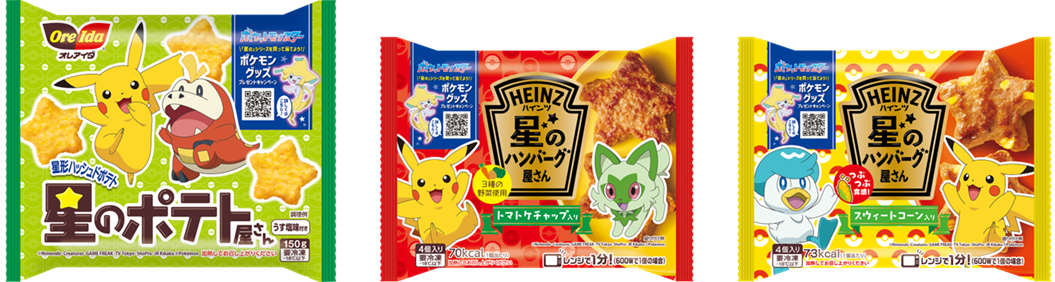 ハインツ日本株式会社は5月1日、「星のポテト屋さん」「星のハンバーグ屋さん トマトケチャップ入り」「星のハンバーグ屋さん スウィートコーン入り」の3品について、ポケモンデザインパッケージを2025年5月より順次発売すると発表しました。販売は在庫がなくなり次第終了とのことです。