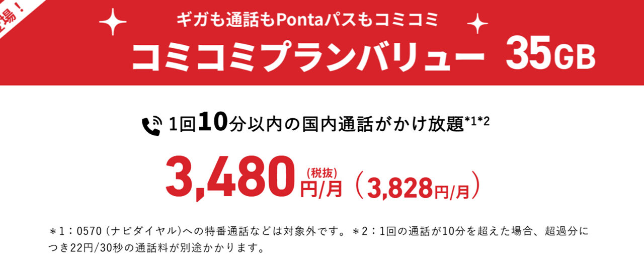 コミコミプランバリューは35GBに増量、Pontaパスも標準搭載
