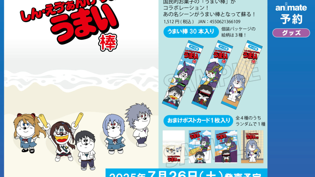 株式会社ムービックは5月9日、アニメ『シン・エヴァンゲリオン劇場版』と人気菓子「うまい棒」のコラボレーション商品『しん・えう゛ぁんげりおんうまい棒』を2025年7月26日頃に発売すると発表しました。