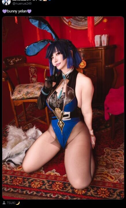 コスプレイヤーのぬえ山ぬえっちゃさんが5月12日、人気ゲーム『原神』のキャラクター「夜蘭(イェラン)」のバニーガールコスプレ写真をXで投稿しました。