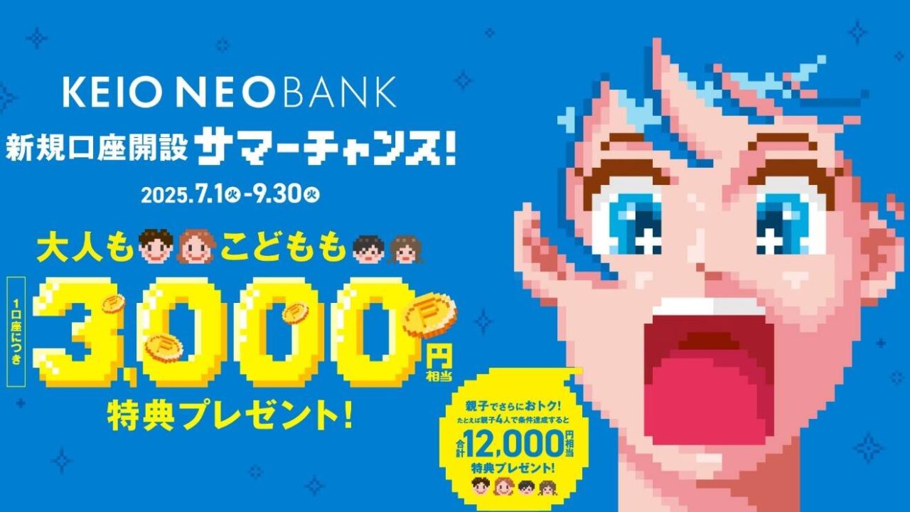 住信SBIネット銀行と京王パスポートクラブは7月1日、『京王NEOBANK』にて「新規口座開設サマーチャンス」を開始したと発表しました。期間中に新規口座を開設し、一定の条件を満たすことで最大3,000円分の特典を受け取れるキャンペーンです。