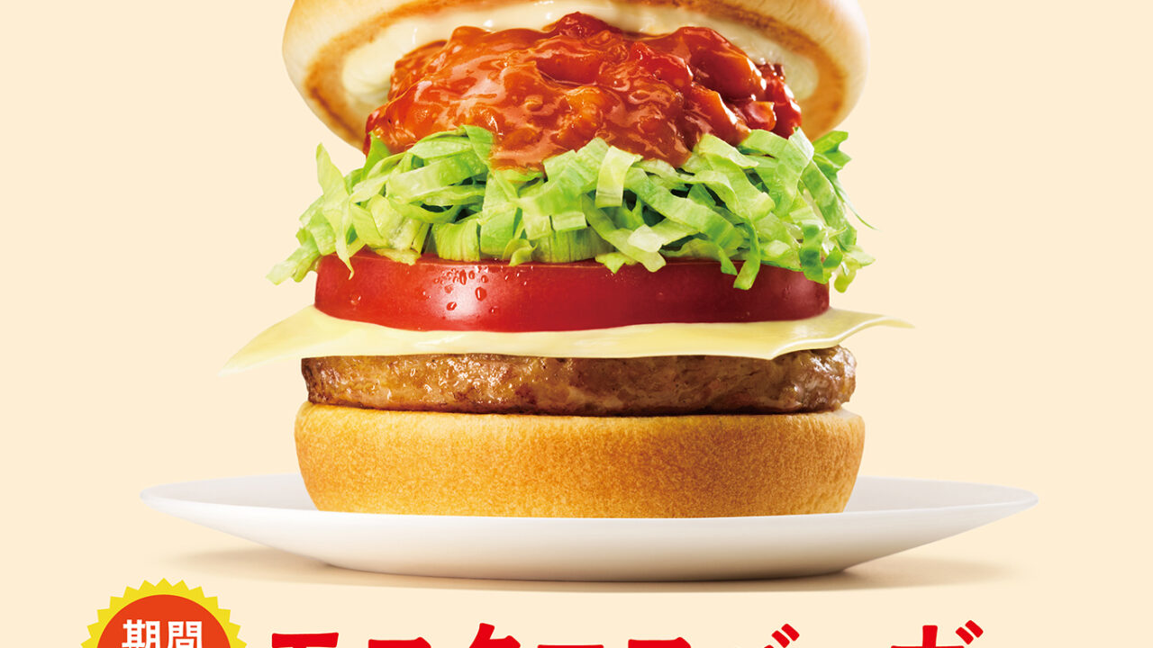 『スパイシーモスタコスバーガー』(590円)は、通常版にハラペーニョをくわえた商品です。同社によると、トマトやチーズと相性の良いハラペーニョの、ピリッと刺激的な辛さが楽しめるとのことです。こちらもパティを1枚追加した『スパイシーダブルモスタコスバーガー』(750円)が展開されます。