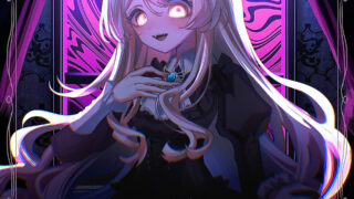 ブロンドのストレートヘアと白いカフスの組み合わせが、黒を基調とした衣装に映える美しいコントラストを生み出しています。