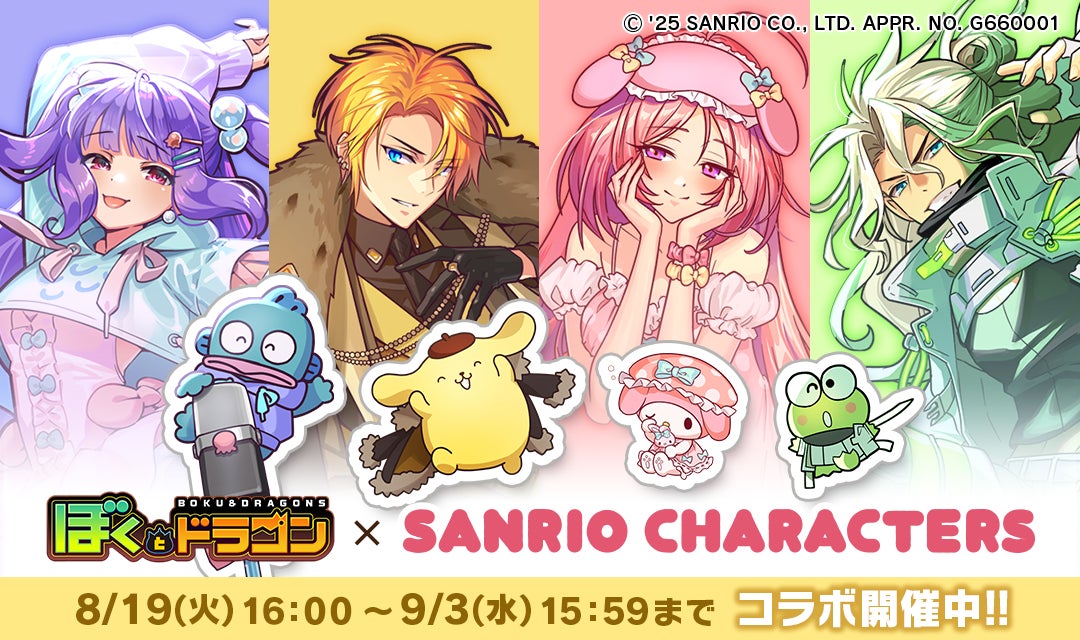 株式会社ドリコムのグループ会社である株式会社スタジオレックスは8月19日、スマホRPG『ぼくとドラゴン』において『サンリオキャラクターズ』との第二弾コラボキャンペーンを実施すると発表しました。コラボ期間は8月19日から9月3日まで開催されます。