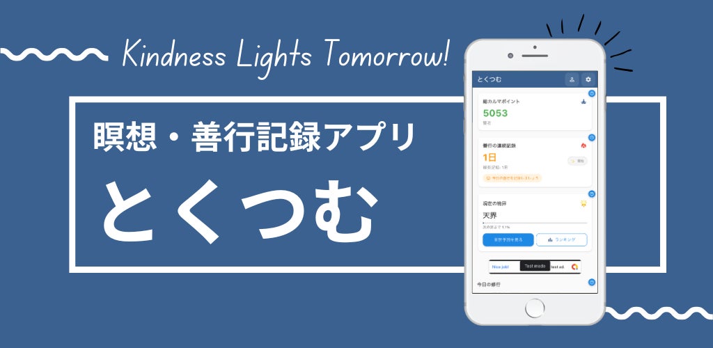 『とくつむ』は、日々の善行を記録し、瞑想を通じて心の成長をゲーミフィケーションで楽しくサポートする新感覚のライフスタイルアプリです。現代社会において心の平穏や人生の意味を見出すことが困難になっている中、日本の伝統的な仏教の智慧を現代的にアレンジし、誰もが気軽に取り組めるように開発されました。