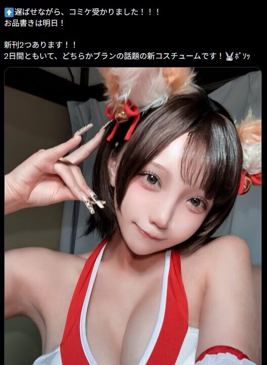 「コミケ受かりました!!!新刊2つあります!!」という嬉しい報告とともに投稿された写真に、ファンからは「かわいい!」、「おおおおお!たのしみいいいいいい!」、「可愛いすごく可愛いすごく美しいですすごく綺麗です頑張って下さい応援しています」、「いつものように息を呑むほど美しく、衣装もあなたにぴったりです」といった応援コメントが数多く寄せられていました。
